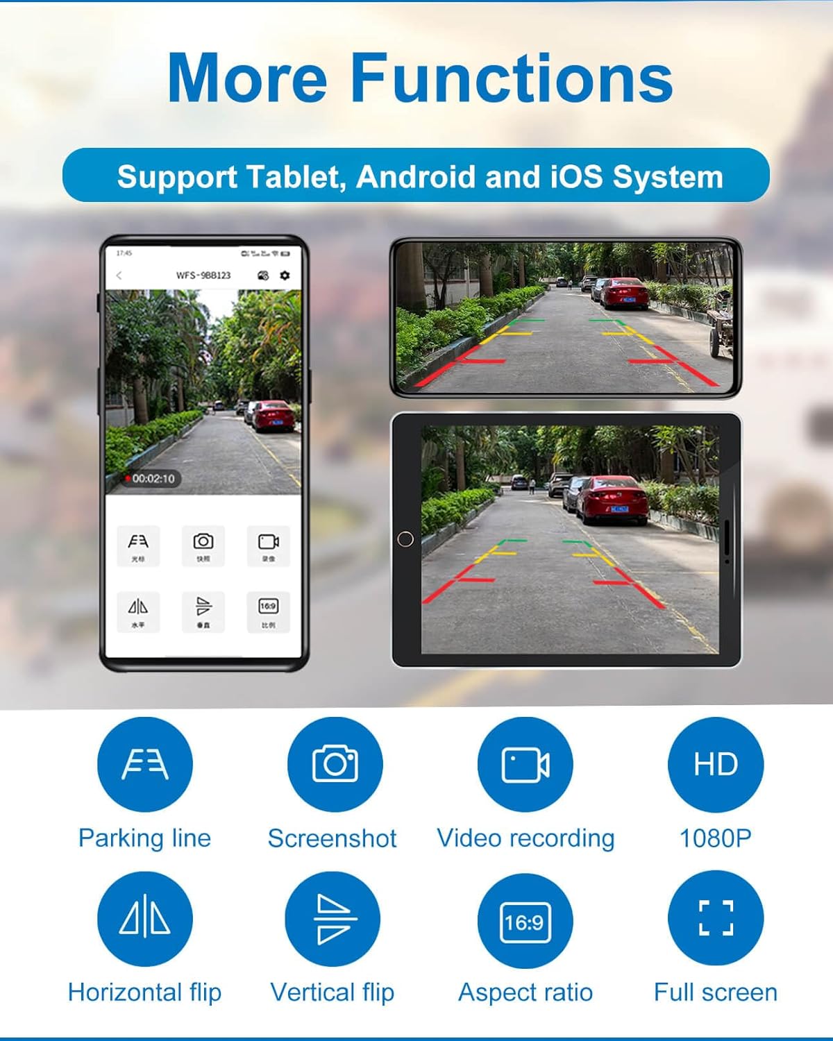 - ăStable WiFi ConnectionăThis wireless backup camera ensures a stable hotspot signal, covering distances of up to 197FT/60m without obstacles. It's perfectly suited for vehicles under 30ft in length (Note: Transmission distance may vary based on vehicle type and environment). The camera can be conveniently powered via USB