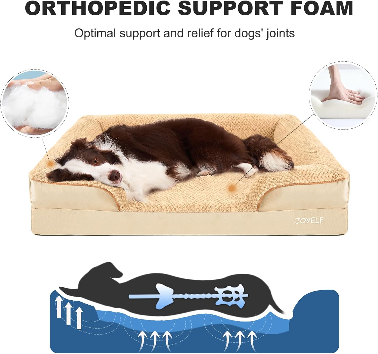 JOYELF Orthopedic Dog Bed for Extra Large Dogs, Foam Sofa Couch Bed, Waterproof with Removable Washable Cover and Nonskid Bottom, Durable - Khaki