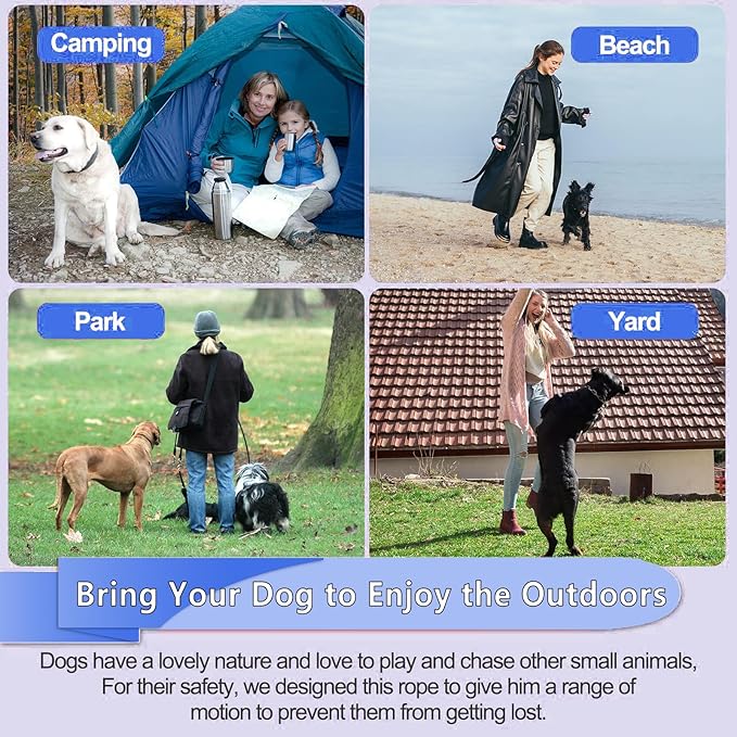- 【Ease of Use & Wide Application】Simply attach one hook to your dog’s collar and wrap the other end around a post, tree, or even tie it to your waist for hands-free control. Ideal for camping, parks, yards, and gardens, this tie-out cable allows you to keep your pet safe during outdoor activities, giving you peace of mind while they explore.