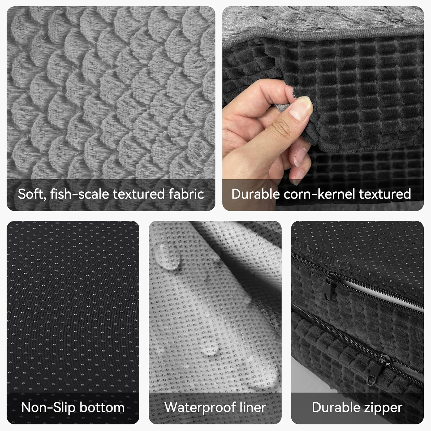 - 【Waterproof & Easy to Clean】This dog bed is designed with a waterproof inner lining that protects the foam from spills, accidents, and everyday moisture. The outer cover features a smooth double zipper design and is fully removable, making cleanup quick and easy. Just unzip, toss it in the washing machine, and enjoy a clean, fresh bed for your furry friend.